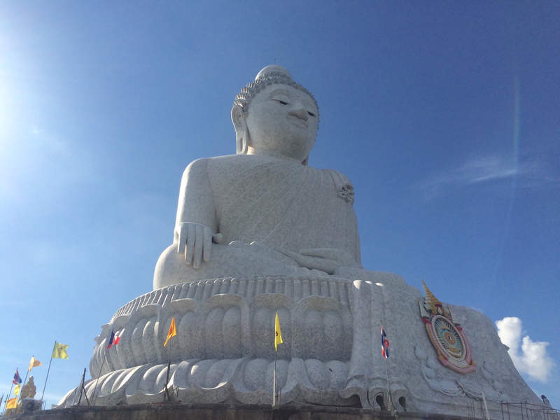 You turn to face the door, and find yourself face-to-face with a mural that covers the entire wall. It tells that story, the moment Buddha defeated Mara and attained enlightenment, using characters from every time and culture. 9/11 is here. Gas pump hoses curl around people's necks, tightening. In the center of the piece, a person. Sitting. Simply meditating.